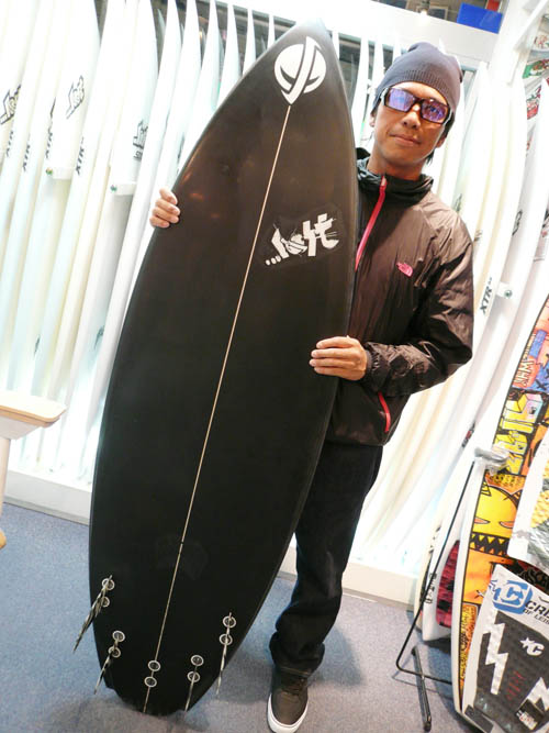 西井が乗っているボードは、PLACEBO UBER FISH 5FIN です。