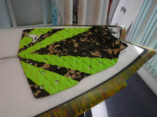 CL-PRO 6'1" エカクタのフットデントシステムにデッキグリップを貼ると