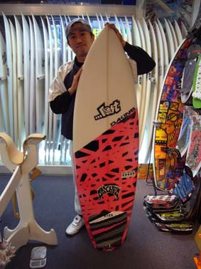 Hさんは、なかなか自分に合うサイズのボードはオーダーしないと見つからないそうですが、サイトに運よくこの5'3"のRNFQが有りすぐお電話でご予約していただき、購入してくれました