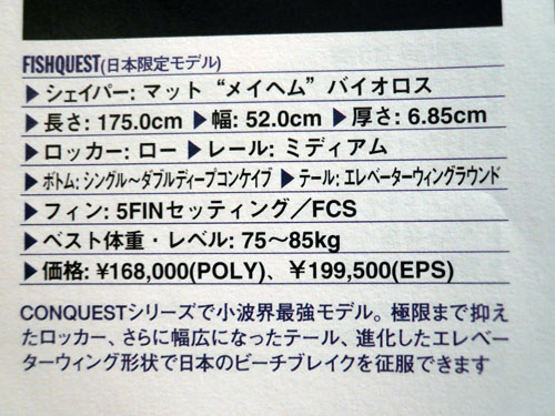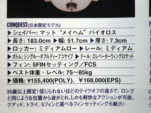 CONQUEST 専用5FIN/FCS付 POLY ¥168,000 (税込み)