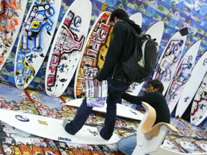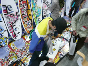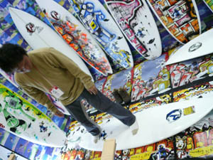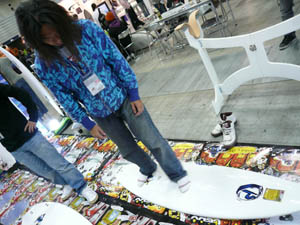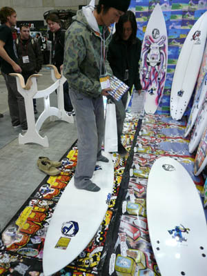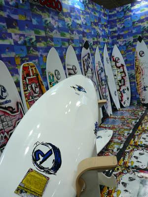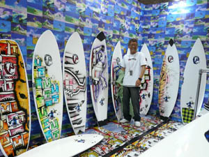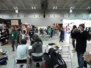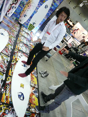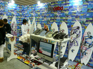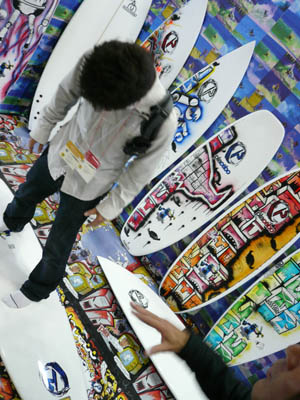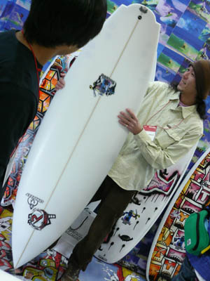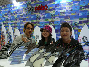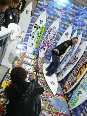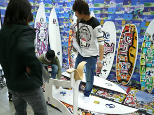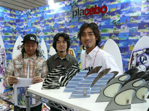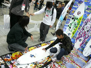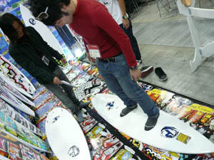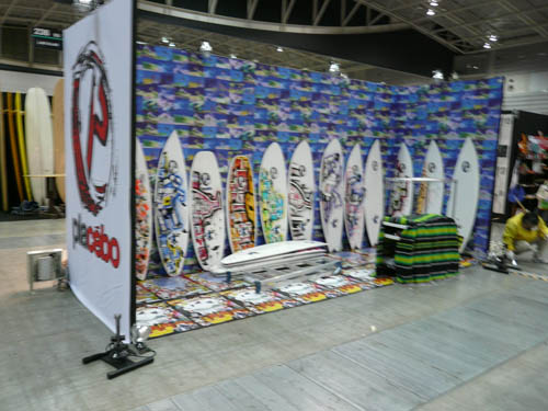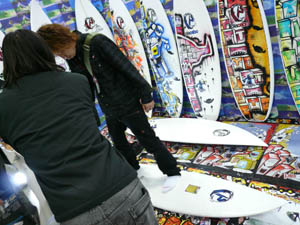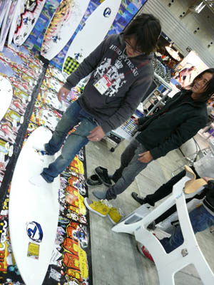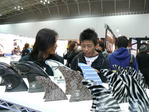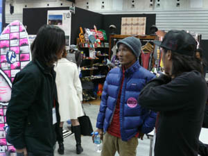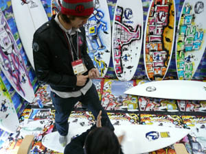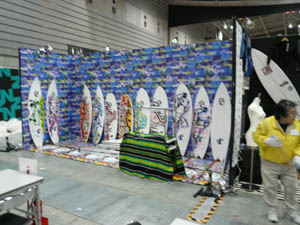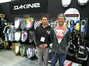 西井のサーフアクセサリースポンサーのDAKINEブースいつも人が大勢押し寄せていました。