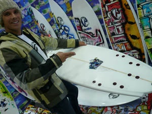 オーストラリアのヘイデン(若手シェイパー)はプレセボに紛れたコンクエストを発見すると、コレがメイヘムの名作と世界のシェイパー内でウワサのコンクエストだね〜とチェックしていました。