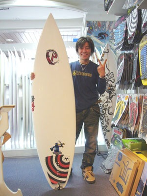 Hさんは、ロングボードやファンボードにも現在まで乗っていた方です。体重が55kgと軽いのですが、パドリングやテイクオフ性能がよくて、動きも良いという欲張りなボードを探していて、全てをみたしてくれそうなサイズは5'10"を購入してくれました。