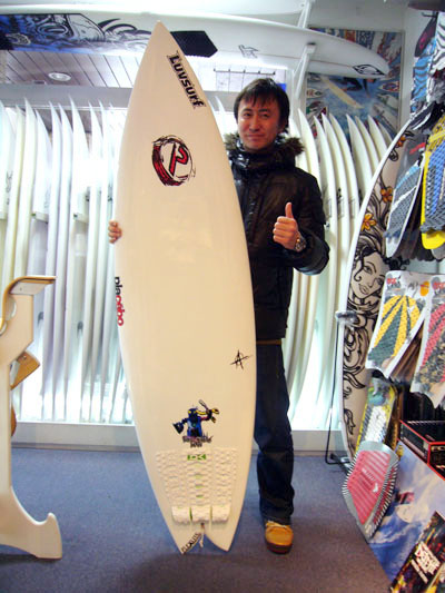 Oさんは、いつもサーフするメンバーのひとりが、先日プレセボの人気急上昇モデルUber Fishをを購入し、その性能が素晴らしいと話を聞かせてもらい絶対に乗ったほうが良いとすすめらて買いにきてくれました。6'1"の千葉のローカルブランドのグラスボードからの乗り換えだそうです。