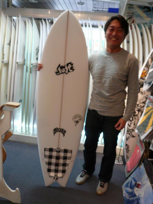 Yさんは、近年はロングボードの乗っていたそうですが、10年ぶりにショートを乗ってみたくなり、LOSTのRNF-Qを選んでくれました。夏は西湘、冬は千葉南に行く事が多いそうです。