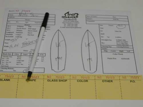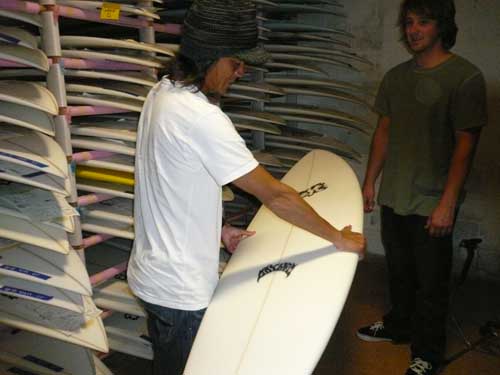 Oさんは、サーフテックに乗っていましたが、そのボードを海外サーフトリップ中に折ってしまったそうで、モールドの丈夫さも考慮して次に乗るモールドならプレセボが良いとサーフ仲間の先輩達にすすめらて御来店していただきました。