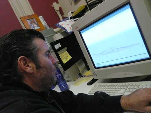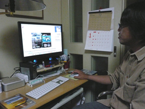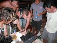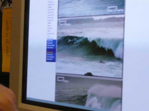 ローカルの親分、カイルアがマレーシアの良い波の写真をみせてくれているところです。
