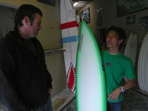 Kさんは、5'11"コンクエストをご予約いただいていて、出来上がってきたのでご購入していただきました。上野にすんでいて茨城によくサーフィンされに行くそうです。