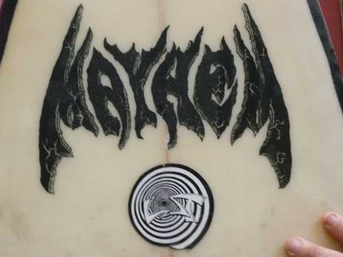 チキンウイリーとメイヘムが初めてシェイプしたというボードです。