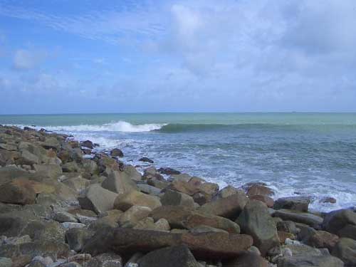 人工の採掘場に偶然できたポイントブレイクです。