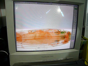 この写真はクアラルンプール空港でサーフボードケースをスキャンされているモニター画面です。