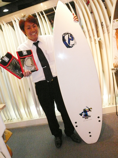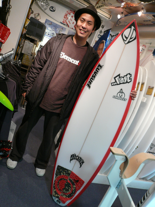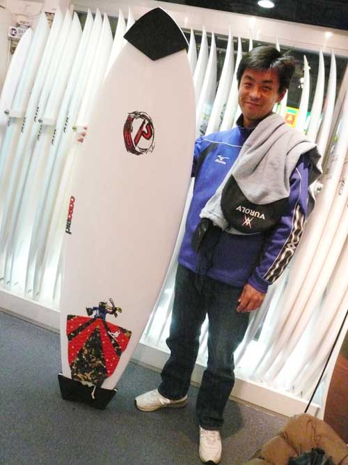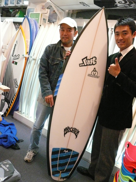 千葉南にお住まいのKさんは、ロストのボードの性能の良さを色々なブランドに乗ったけれど凄いと解っていただいている方の一人です。先日のラヴサーフカップでもサイコワードモデルで優勝した、サイコワードの大ファンさんです。そんなセールに出たサイコワードモデルを電話で在庫確認してから来店してくれました。友人の分もサイズが合うものを頼まれたらしく、2本購入してくれました。
