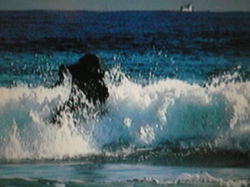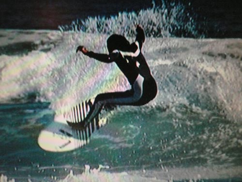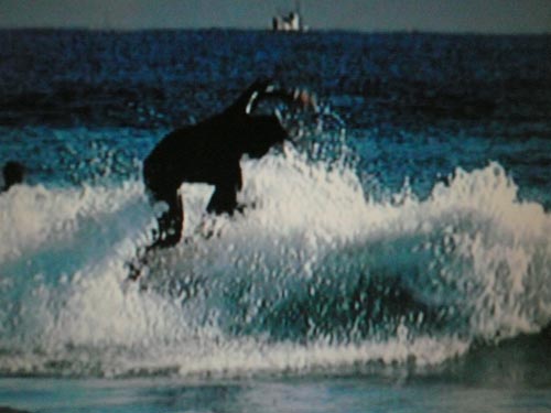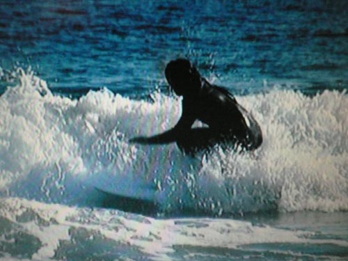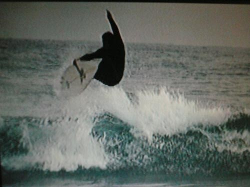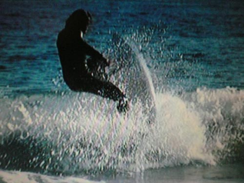 <バックサイドのスリーシックスティもこんな小波でもスピードに乗って浮いているので簡単です。