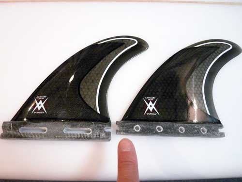 フロントサイドフィンはおよそFCS/M-7と同じぐらい高さで形違い、