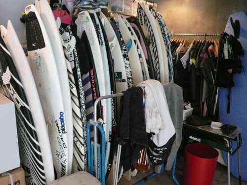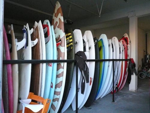 メイヘム家のサーフボードラックです。