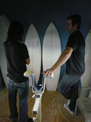 Aさんは、じっくりとサイコワードモデルとWCTモデルの自分サイズの多数のボードを見比べてWCTモデルを選んでくれました。アウトラインも好みだそうですが、なんと言っても決め手はコンケーブがWCTの方が深いということが理由だそうです。自分のボードを何本も時間をかけて実物を見て選ぶのは楽しいですね。