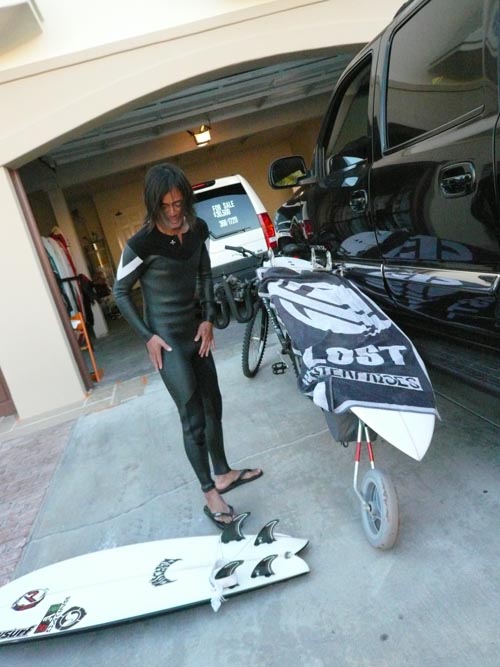 今回はブーツも持参しています。今年は、クアッドボードが日本でも認知され乗っている人が多くなりましたね。どうやら、クアッドの本場カリフォルニアでは、ハイパフォーマンスボードのクアッドフィン搭載モデルが熱いようです。