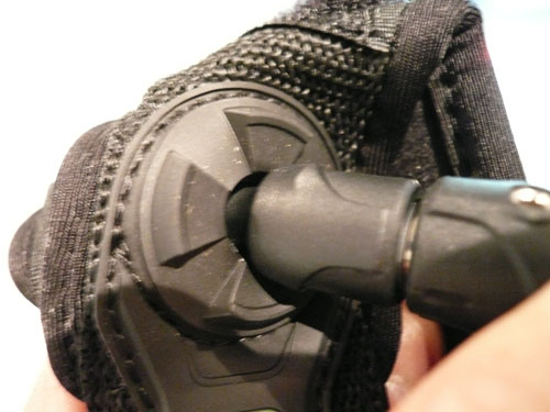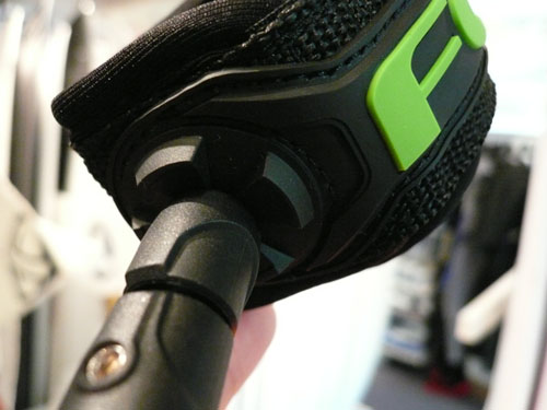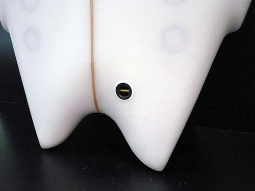 通常四角いパーツで作られているこの根元部分が丸く、ワイプアウト時に引っ張られても横に倒れてくれるので足への負担が少なく、丈夫な作りになっています。