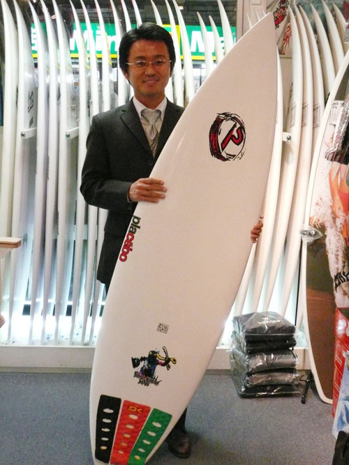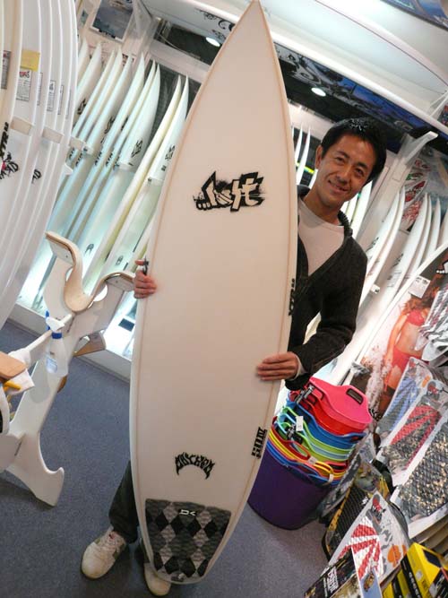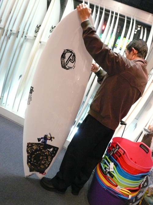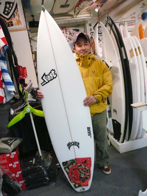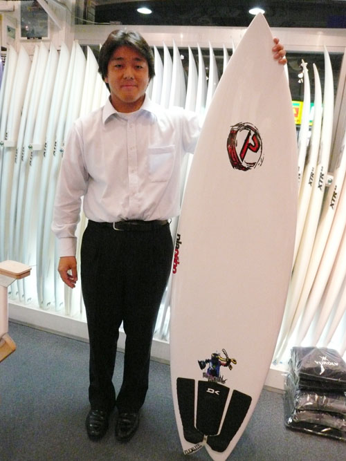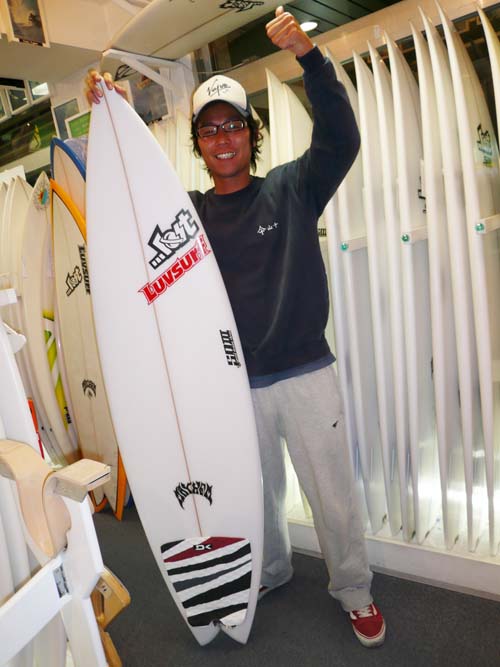 こちら、CL-PRO5'10"をご購入いただいた、Aさんです。この新古ボードの状態を、お近くにお住まいでなので現物を見てからのご購入です。ラヴサーフからは2駅ということで仕事帰りにピックアップして、電車にのって帰られました。