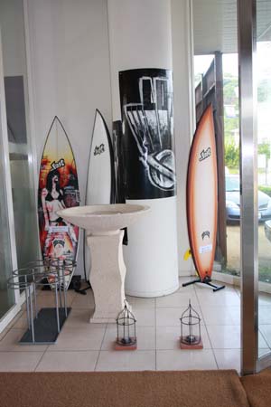 滞在しているサヤンテラスホテルの入り口に飾られた、LOSTサーフボード。