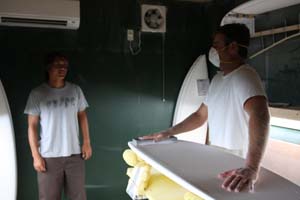 自分のボードを2本作り持って帰りたいと言い出しました。フォームを調達するように頼まれ中の大海さん。