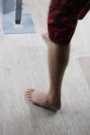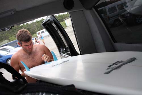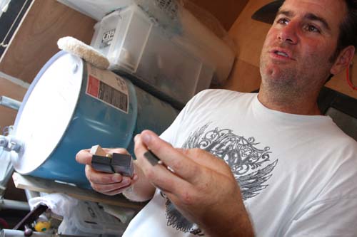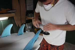シェイプルームに入ると一番最初に、自分の6’2”モンクのテールをサンダーで、