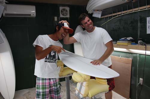 CHPさんの人気シェイパー ハウイさんがメイヘムが来日していると聞き、シェイプルームを訪れました。彼とメイヘムは初対面ですが、そこはシェイパー同士ですので、