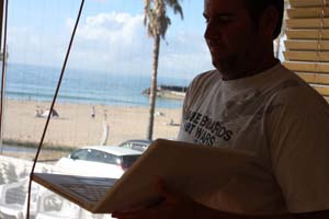 毎朝、メイヘムは1〜2時間ほど、持参したPCで仕事をメール仕事をしてから、