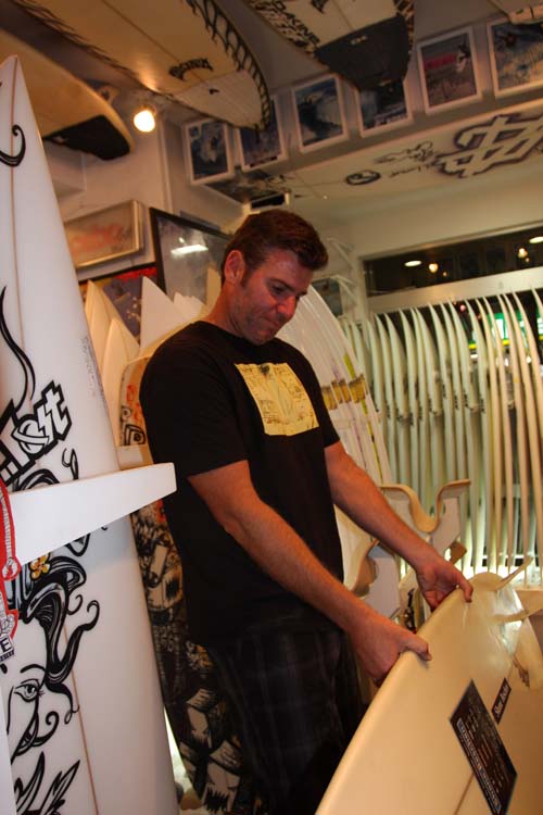 ワールドポーターズ内のビーチサウンドさんへ日本でライセンス製産されているロストの洋服を見に、視察。ウインドウにディスプレイされているボードがロストでないのでガッカリしていました、、。