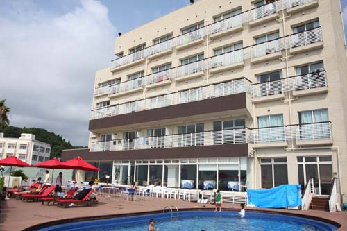 ステイしているサヤンテラスさんを海岸から見るとこんな感じです。