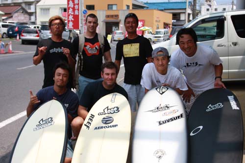 見送りに集まってくれたチームLuvsurf達と歴代のRNFシリーズを並べて、