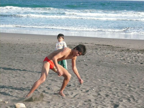 Bさんは、50代という年齢なのですが、毎週末、東京から飯岡Pへ通いサーフィンを楽しんでいる方です。映像関係のお仕事をされていて、サーフィンの撮影方法ももっと違ったアングルや見せ方があるんだよ、と色々教えて頂きました。