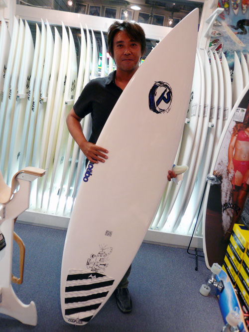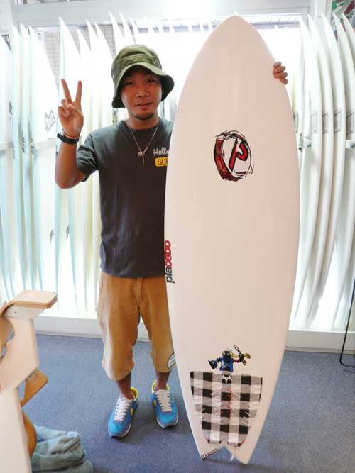 Oさんは、現在乗っている6’2”のボードが動きが重たくなってきていて、友人がプレセボのプセエード FISHのユーザーで調子良さそうに乗っているのを見て触発され、強い、軽いというプレセボを購入してくれました。