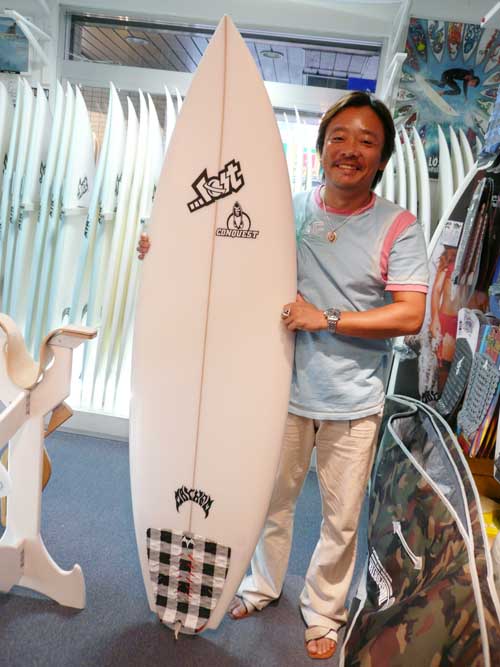 Yさんは、コンクエストの一番大きいサイズのカスタムカラーのボードを購入してくれんました。普段は10フィートのロングボードに乗っていて、体が大きいので乗れるショートボードを探していてコンクエストの存在を知っての購入です。