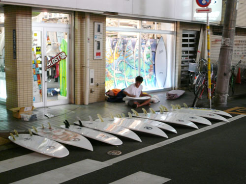 御来店できる方はこのように是非、何本かのボードをリストアップして、実物を比較検討してお時間をかけて見比べてご検討ください。遠方の方で御来店が不可能なお客様へは、スタッフが納得の行くまで、詳しくボードの違いをお電話にて説明させていただきますのでお気軽にご質問ください。