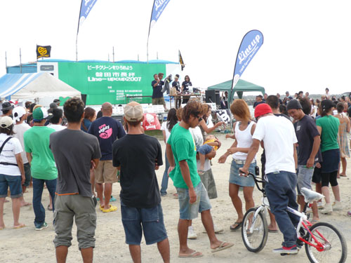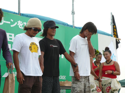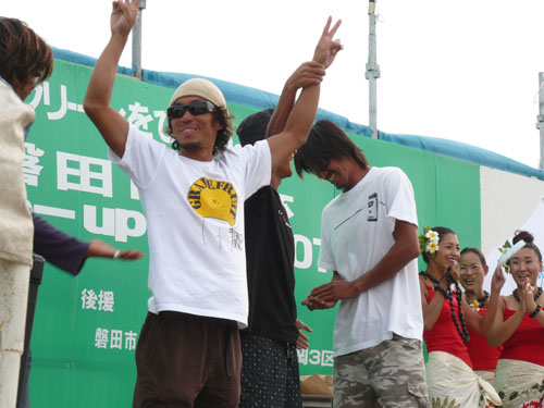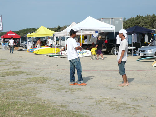 画像は波待ち中のポーズで仲間のKTさん(以前にボードを購入してくれた方)からのリ