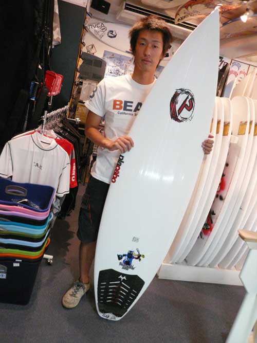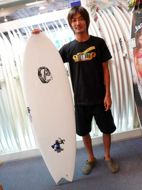 Yさんは、本日アップされた、新古のプレセボ6’0”を見つけて、お電話頂き、御来店してくれました。新品のプレセボCL-PRO6'0"を購入する予定でしたが、程度の良い新古で値段も安いということで、即決めです。