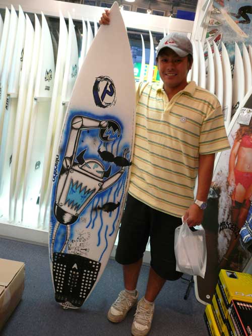 Hさんは、お盆休み中に九州へサーフトリップして、ボードを宅配便で自宅に送ったら、壊されてしまい、乗るボードが無くなってしまい、プレセボCL-PRO6’2”を購入してくれました。ボードを他人に預けることがあっても、プレセボのフレックスライトは強度があるのでこれで安心だということです。なるほどプレセボはこんな選び方もあるのですね。ボードの軽さに驚いていましたね。