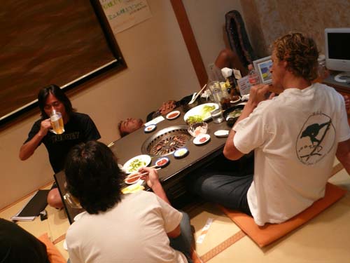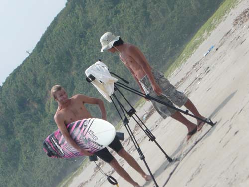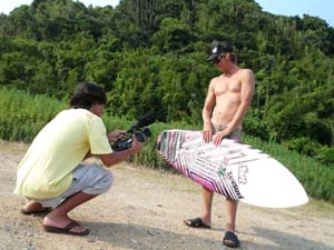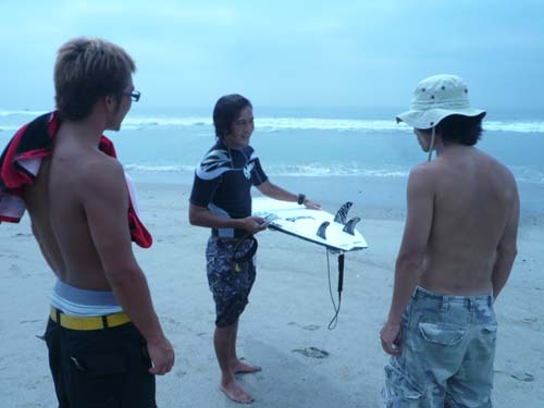 では、皆でサーフビデオセッションをしようと、波をさがしましたが小波です。