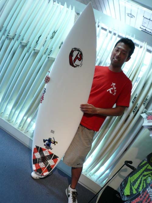 先日発売された、SURFBOXというDVDを見て、西井がボードの上に乗っても壊れない映像をみてビックリして、買うならプレセボだ!!!と決めてくれたそうです。