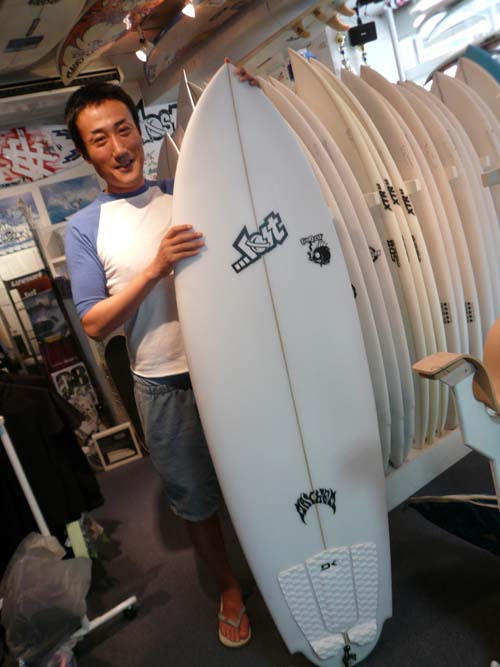 Oさんは、現在使用中のボードよりもパドルのフィーリングが早くて乗りやすいボードをお探しでした。今回はロストの中から選びたいと言う希望から、御来店していただき、色々なモデルの実物を比較検討して、SHARKをお選びいただきました。