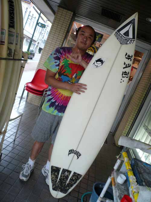 ゴーキンは、伊良湖へ向かう途中にラヴサーフによってボードをピックアップしていったんです。