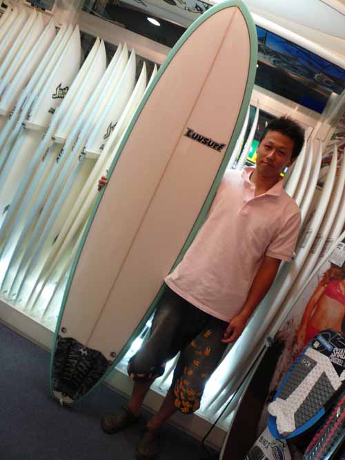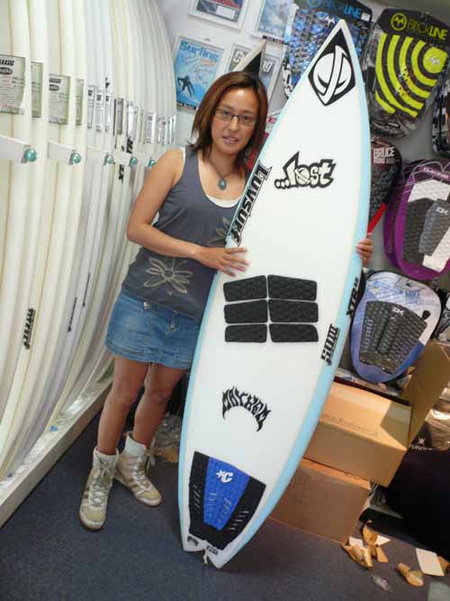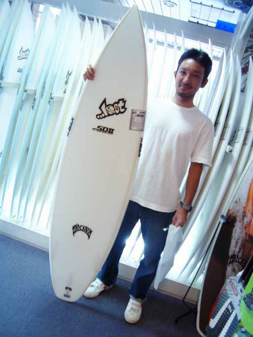 Sさんは、入荷したばかりの、SD2パラボリックXTR5.Cを、なんと彼女さんからプレゼントしていただきました!幸せ者ですね。アルメリックを乗り続けていたのですが、友人がロストXTRに乗り換えて、あきらかにサーフィンが変わってしまい、自分も次回は絶対にロストにするぞと決めていたそうです。まずは、SD2でロストを試し、次回はカスタムオーダーを狙っているそうです。