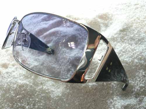 シルバーメタルフレームに、クリアーカラーのレンズ、