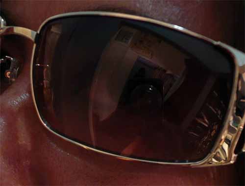 シルバーメタルフレームに、ブラックカラーのレンズ、