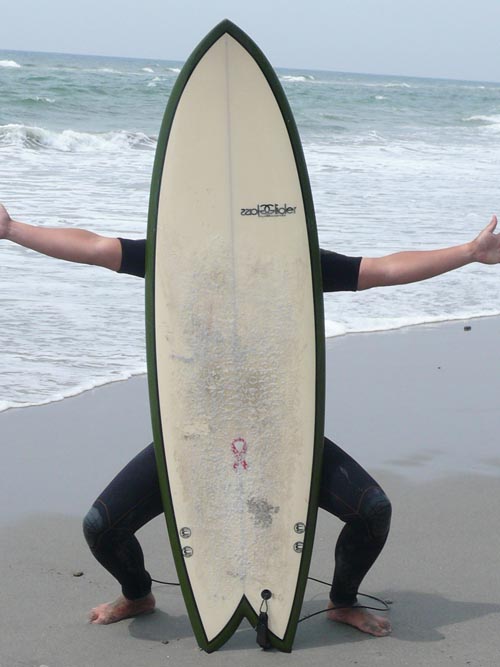コレは、これからQUADボードに乗ろうとしている皆様への僕とシンボウさんとのアドバイスですが、以外とQUADは、大きめのフィンのほうが、ターンがボトムでもトップでもホールドするのクセが無く乗れますし、リップアクションでもスライドしすぎないですよ!