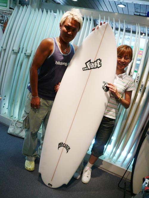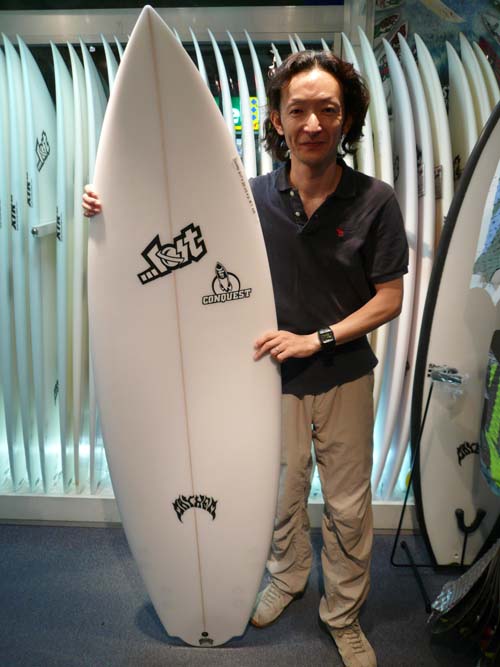 Tさんは、緊急空輸された、5’10”FQをご購入です。店頭にて5’9”と見比べて、
