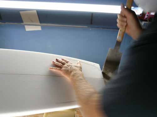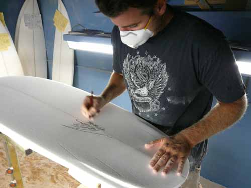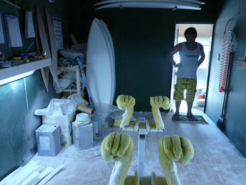 ここをお借りしてメイヘムが2週間かけて、貴重なボードをシェイプします。