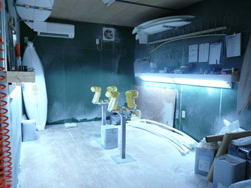 ここがメイヘムが来日してFIBERFLEXをシェイプする、シェイプルームです。