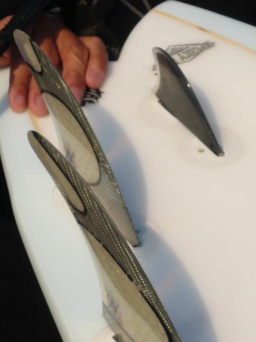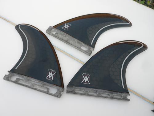 今日はターンをのばしたかったので5フィンでのりました。
